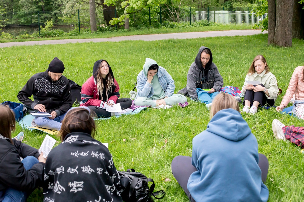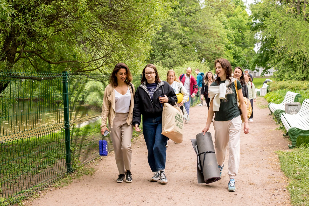 Спонтанно возникшее предложение выйти для занятий в парк получило единодушную поддержку, и, несмотря на некоторое похолодание и намечавшийся дождик, в парке собрались все!