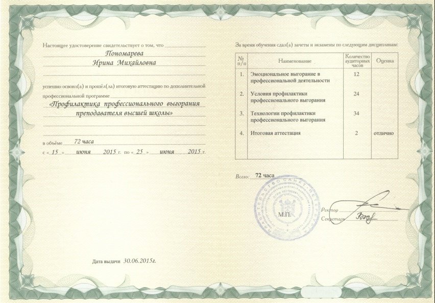 - Программа "Профилактика эмоционального выгорания преподавателя высшей школы".