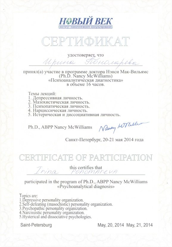- Программа "Психоаналитическая диагностика". Ведущая - Nancy McWilliams (США).