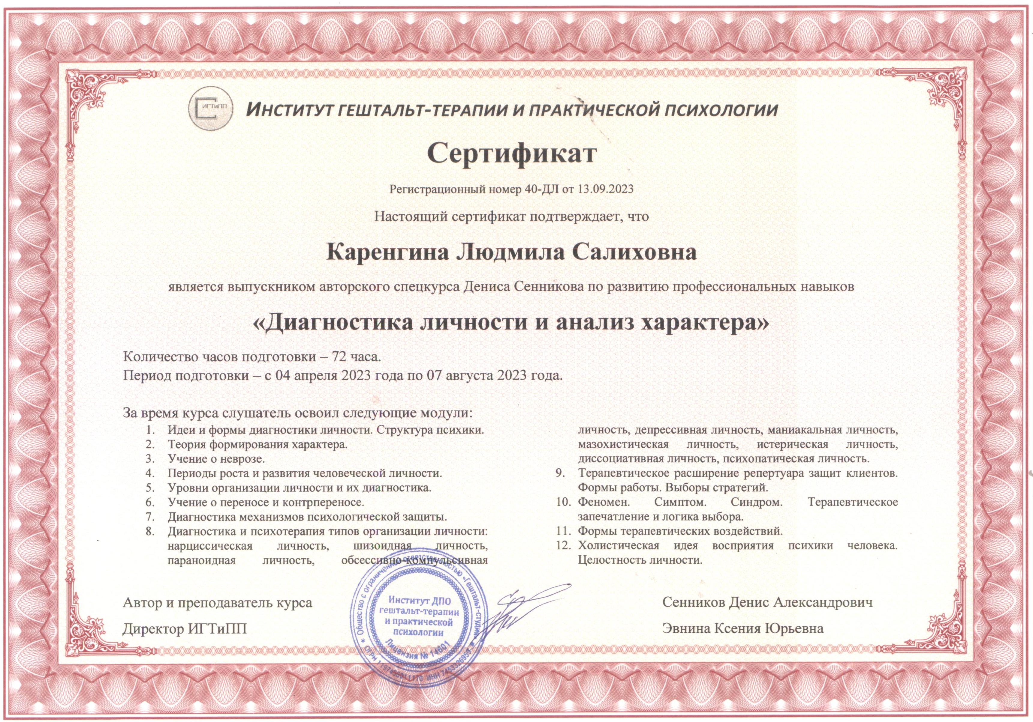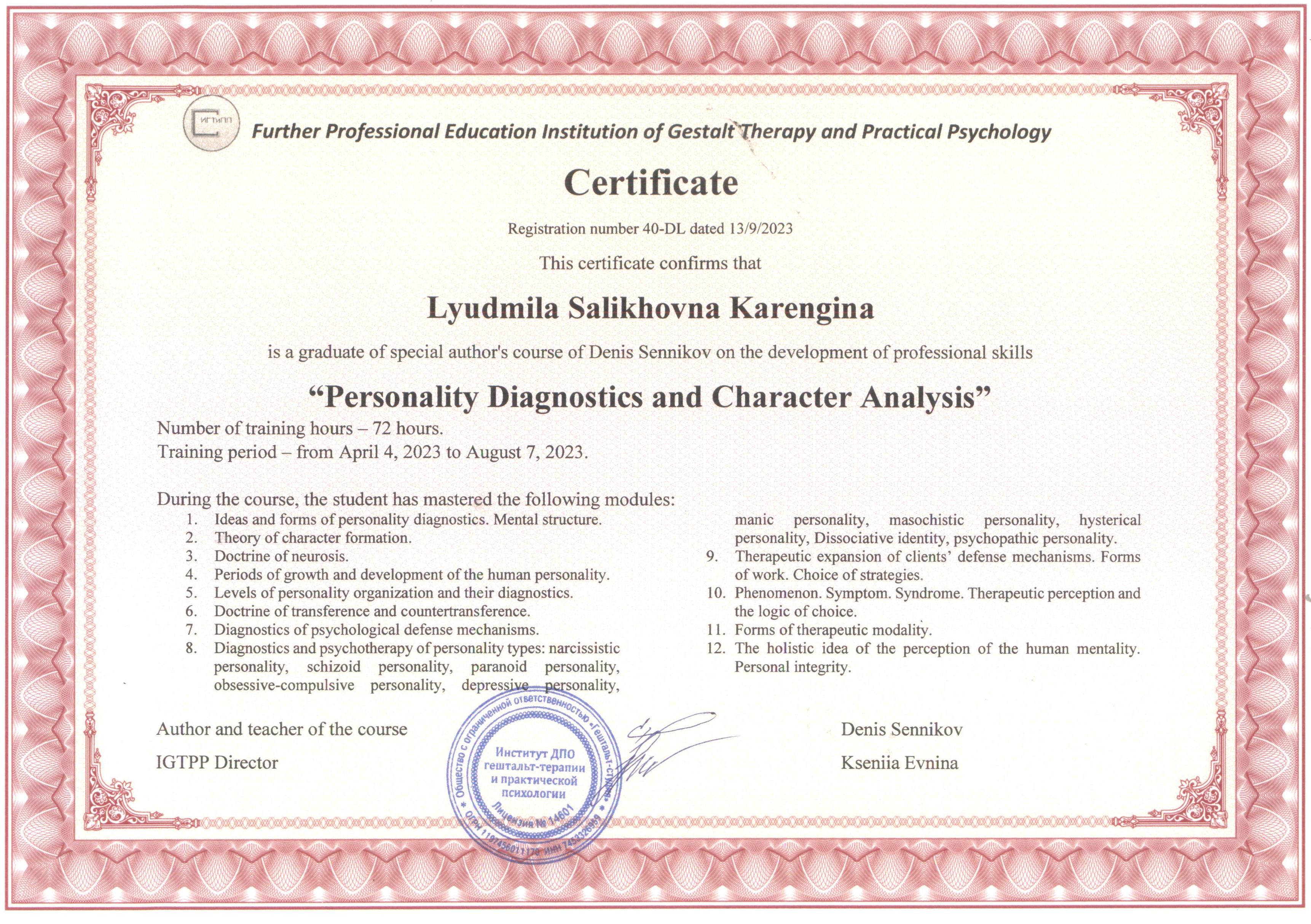 - Институт гештальт-терапии и практической психологии "Диагностика личности и анализ характера".