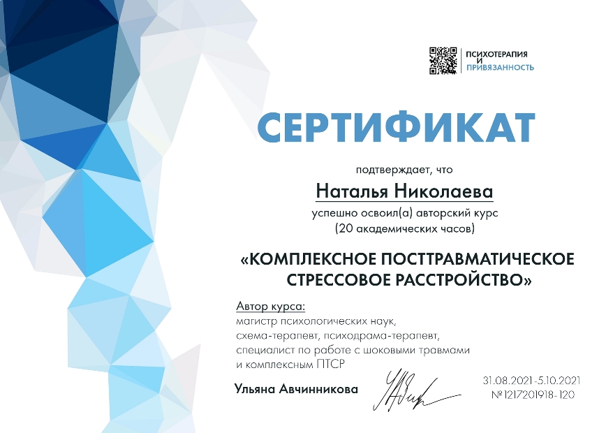 - 2021 Курс "Комплексное посттравматическое стрессовое расстройство".