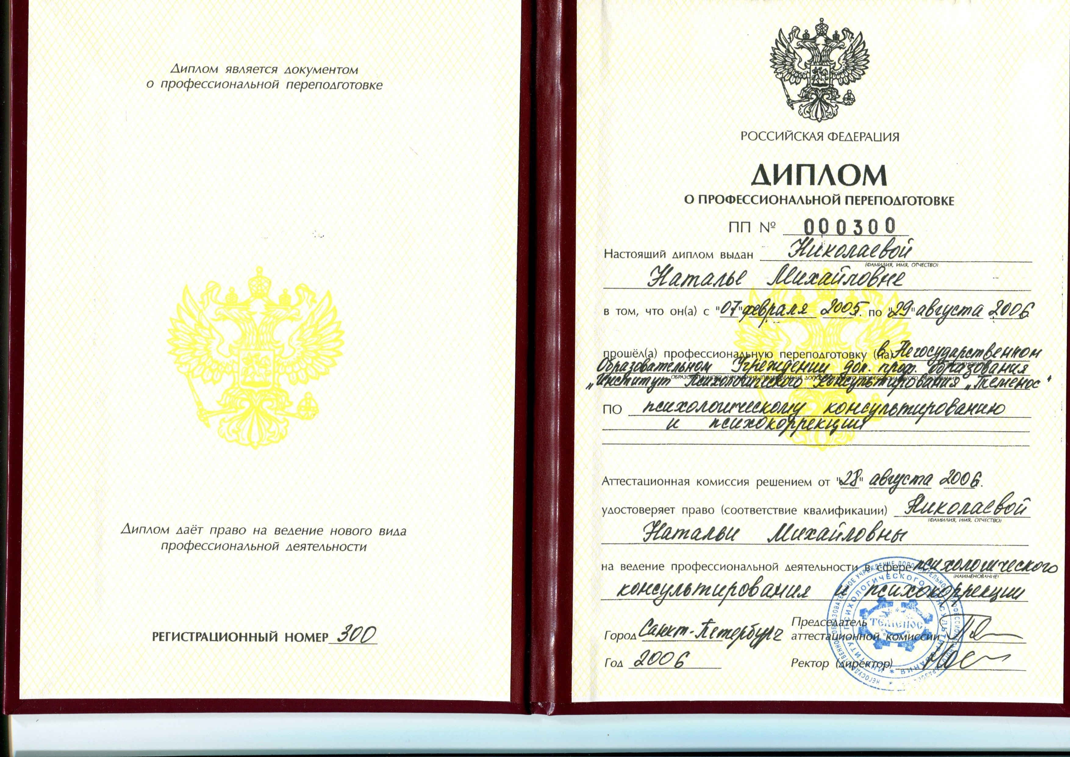 - 2005 – 2006 Институт психологического консультирования "Теменос" (Психологическое консультирование и психокоррекция).