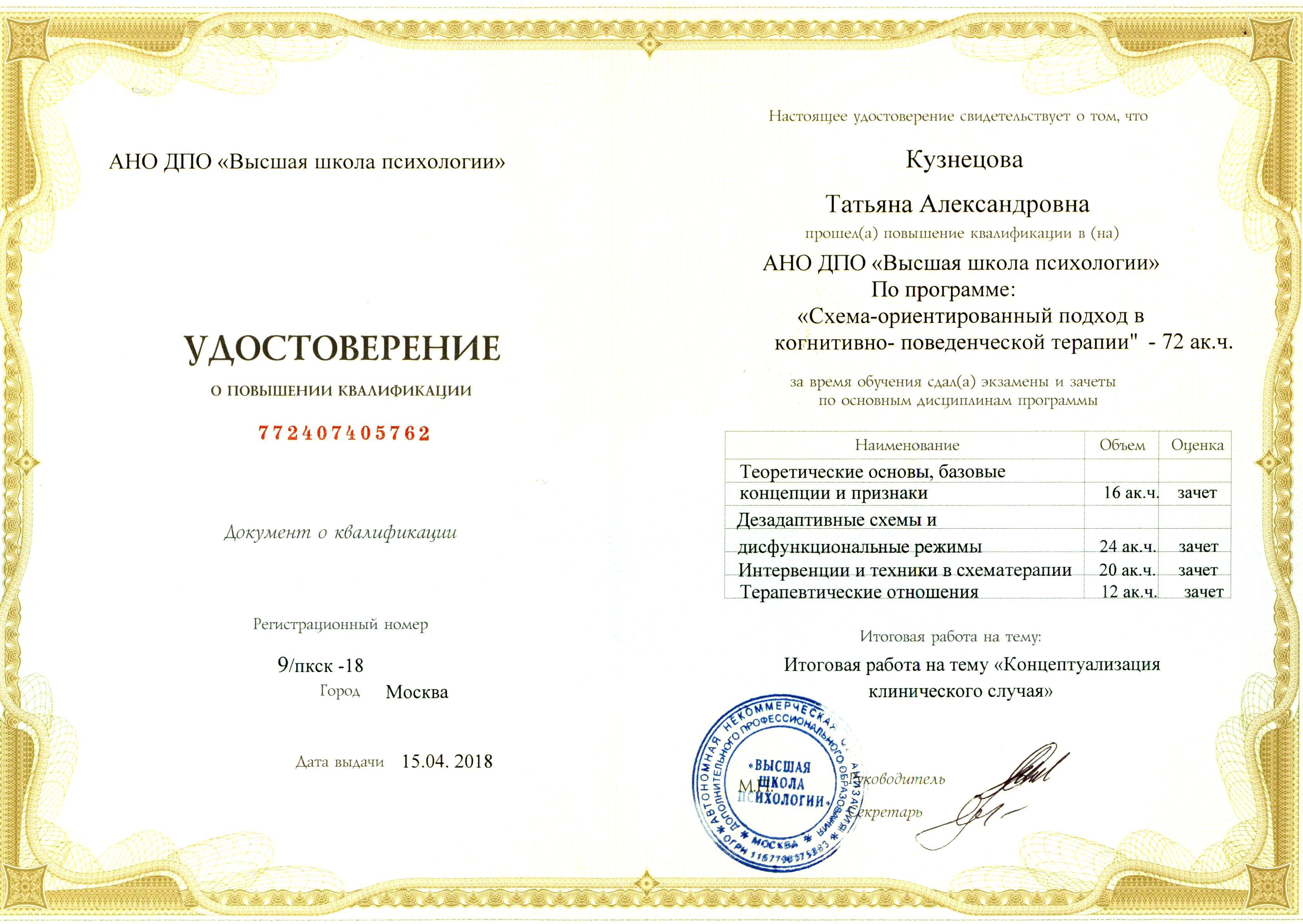 - Курс повышения квалификации: СПб Государственная педиатрическая академия «Вопросы детской и подростковой психиатрии».