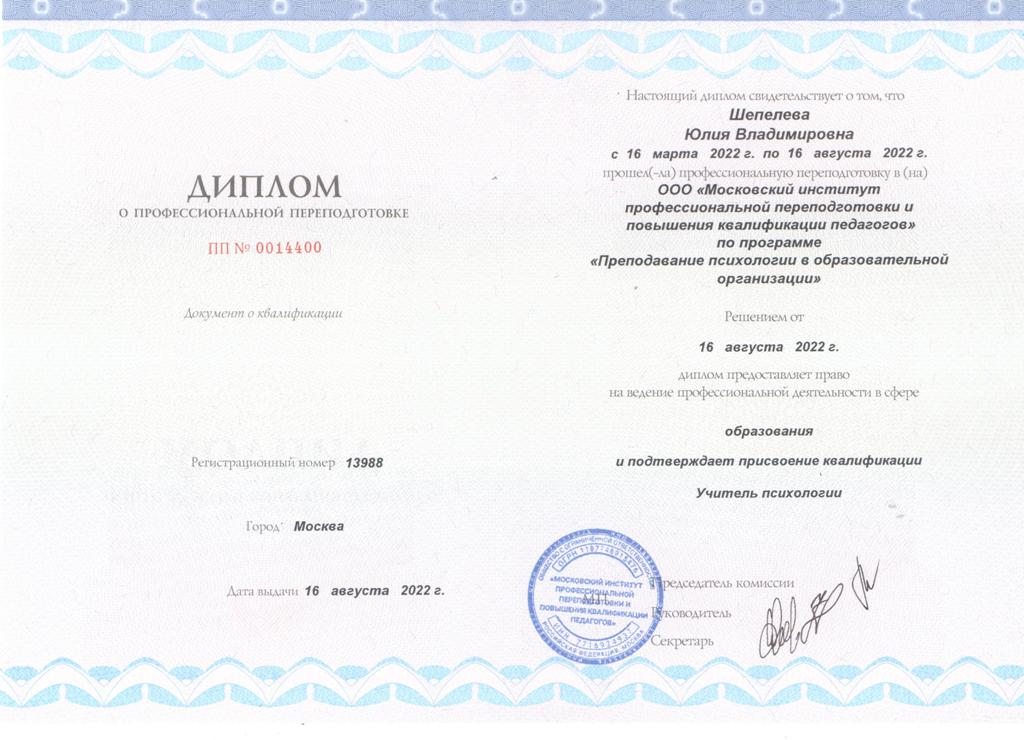 - Московский государственный университет технологий и управления, квалификация: Экономист-менеджер. Специализация: «Экономика и управление на предприятии (пищевая промышленность)»
