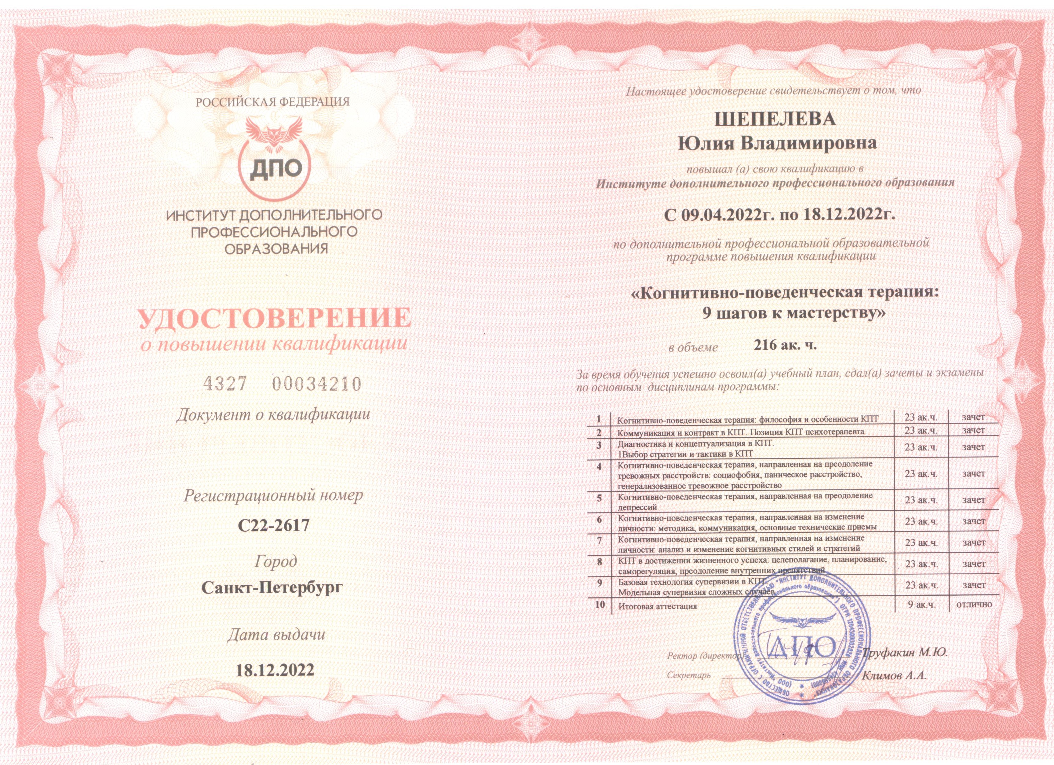 Когнитивно-поведенческая терапия: 9 шагов к мастерству - Институт дополнительного профессионального образования