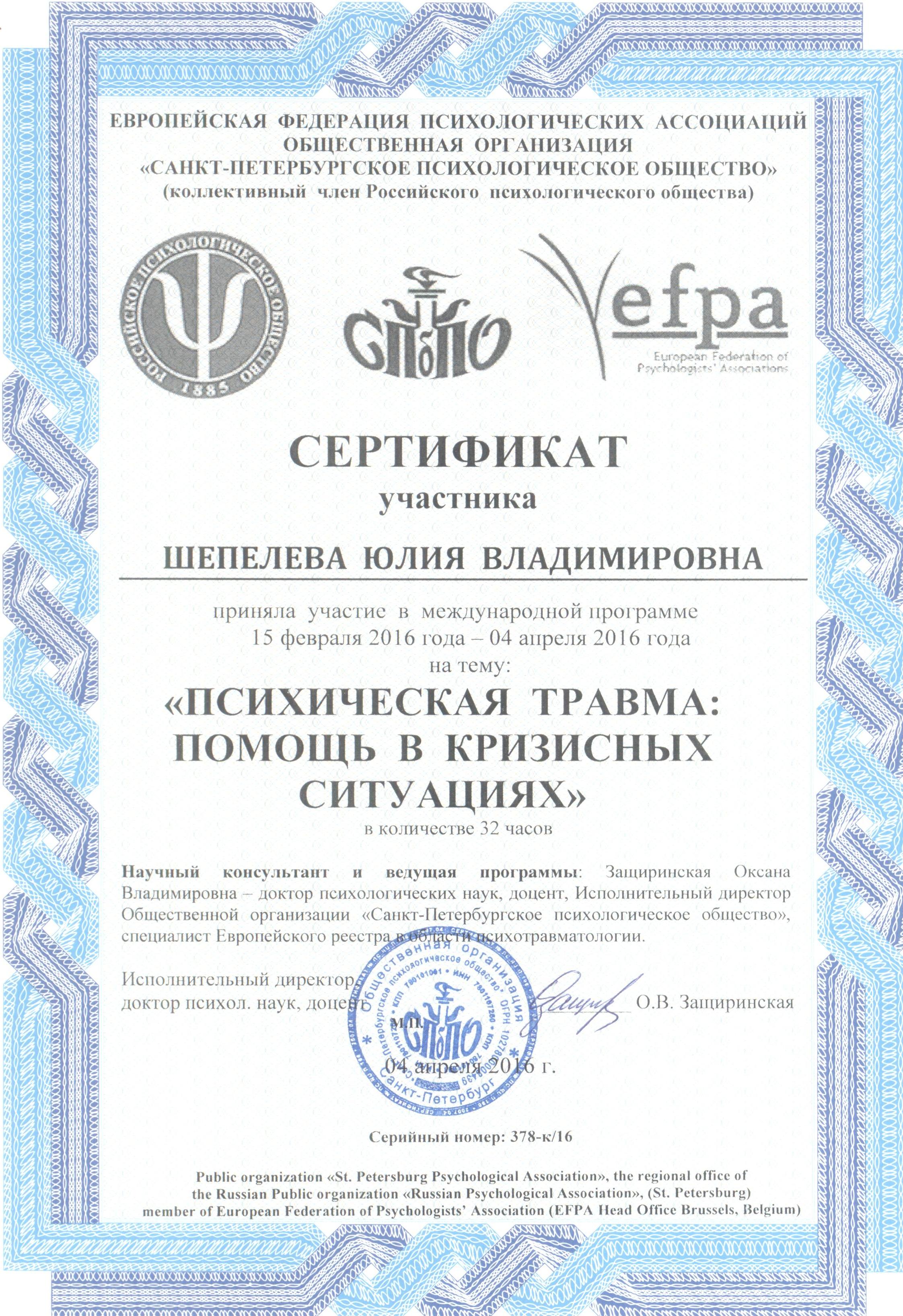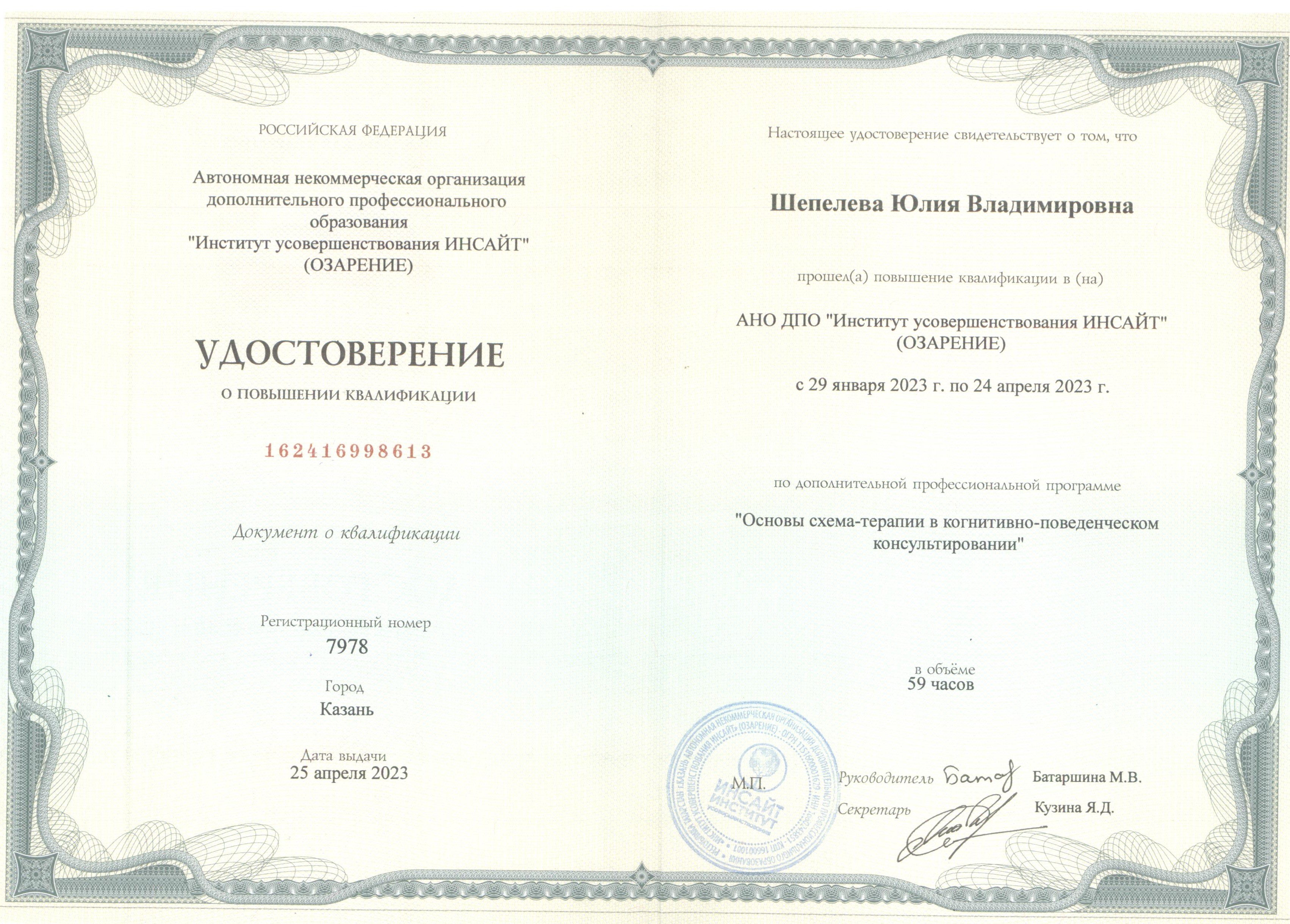 Методы работы: в сессиях используются методы КПТ, Схема-терапии, LI-терапии и EMDR. Работа со взрослыми.