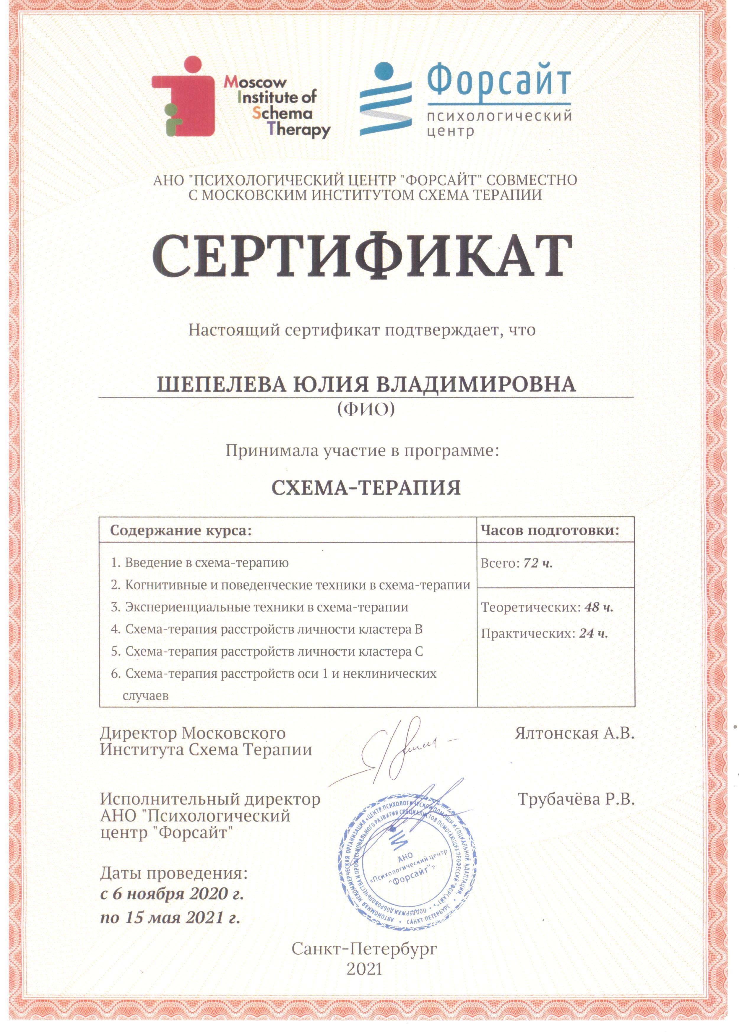 Программа Схема-терапия- АНО "Психологический центр "Форсайт" совместно с Московским институтом Схема-терапии