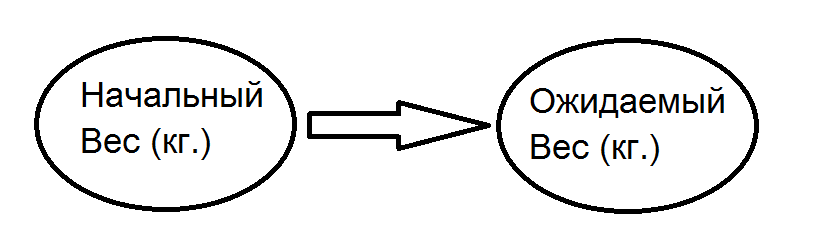 С клиентом мы проговариваем условия контракта. В контракте клиент сообщает данные своего социального статуса, проясняем запрос, обсуждаем проблемы, которые актуальны. Я довожу до сведения клиента информацию о конфиденциальности и безопасности, условиях встреч и их регулярности. О возможных эмоциях, которые может вызывать терапия. Сообщаю о своем профессиональном уровне. На первых встречах, мы проговариваем с клиентом его ожидания на терапию. На листе бумаги я рисую прямую с указанием исходного веса клиента и его ожиданиях (вес которого он хочет достичь). После этого мы обговариваем возможный путь, скорость приемлемую для терапии. Что для клиента важно на первом этапе и последующих. Пример приведен на рис. 2.