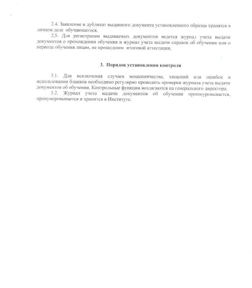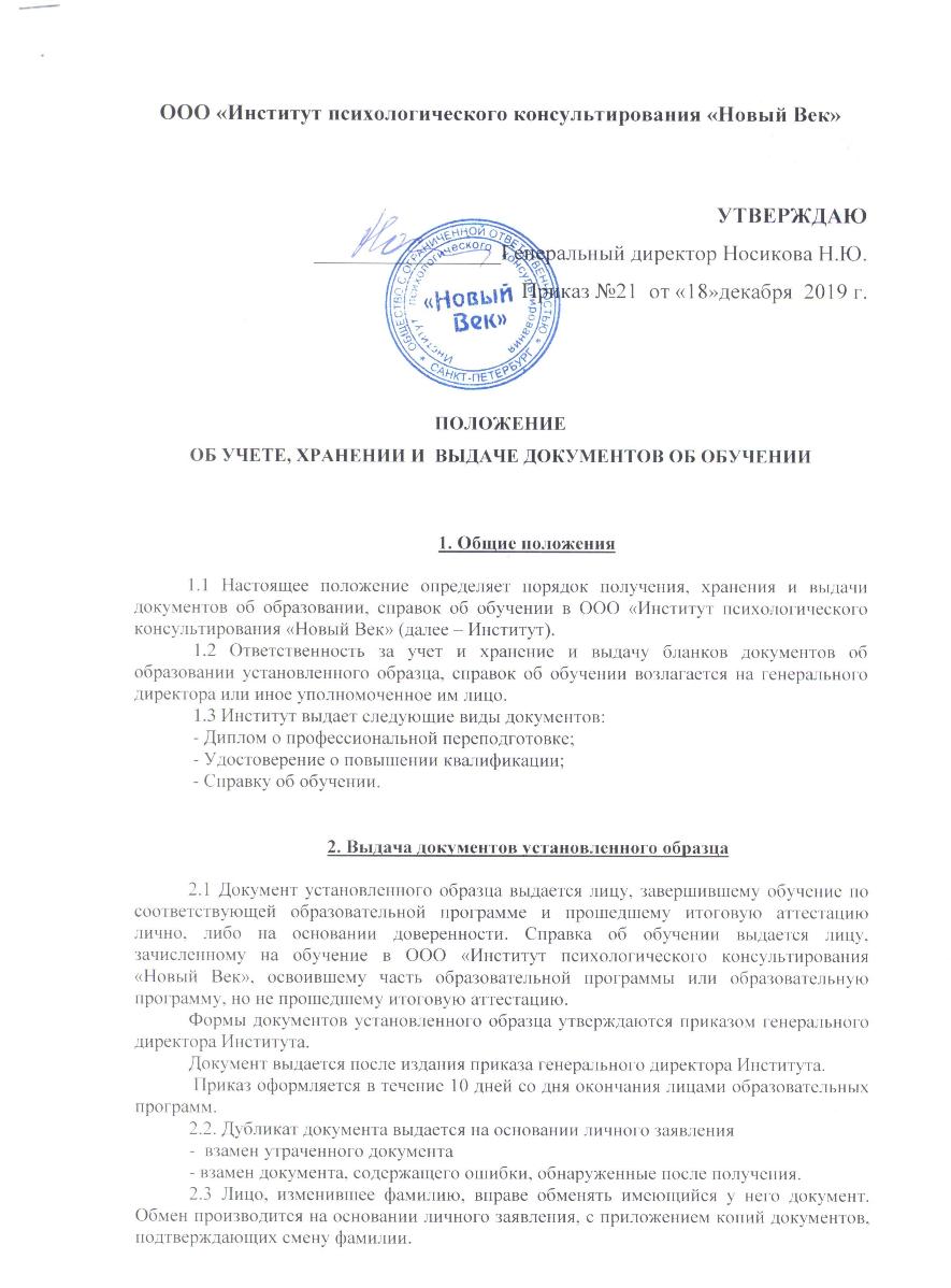 Положение об учете, хранении и выдаче документов об обучении
